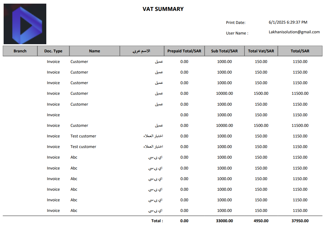 VAT SUMMARY REPORT